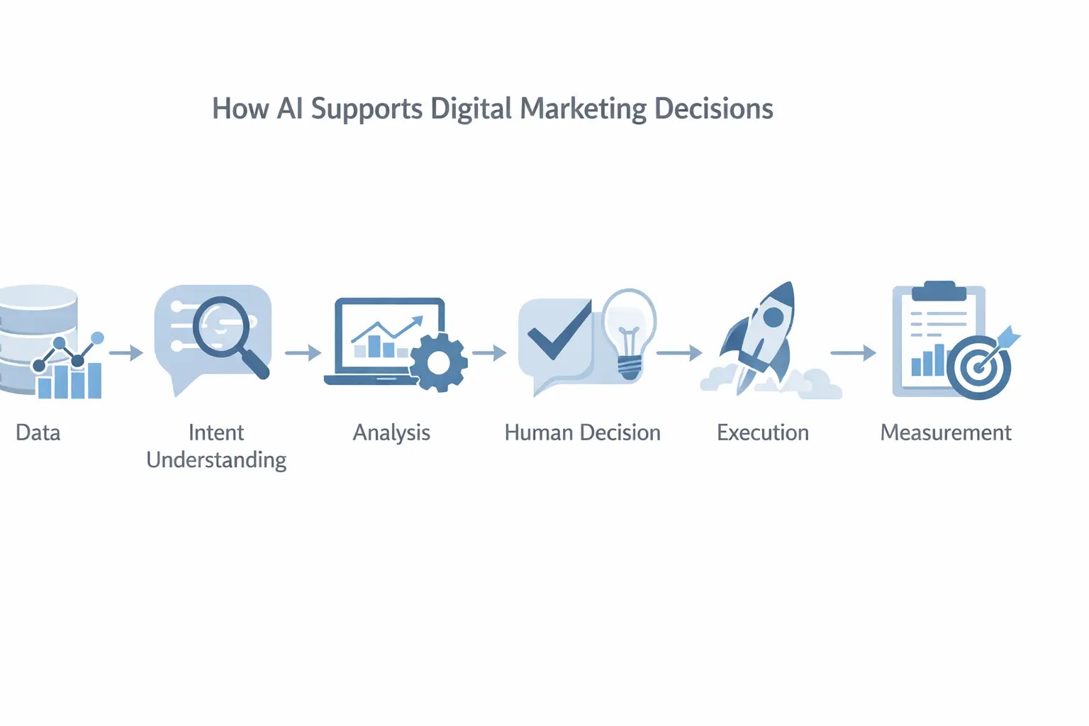 Instead of replacing marketers, AI augments human judgment by processing large volumes of data, detecting patterns, and surfacing insights that would otherwise be missed.